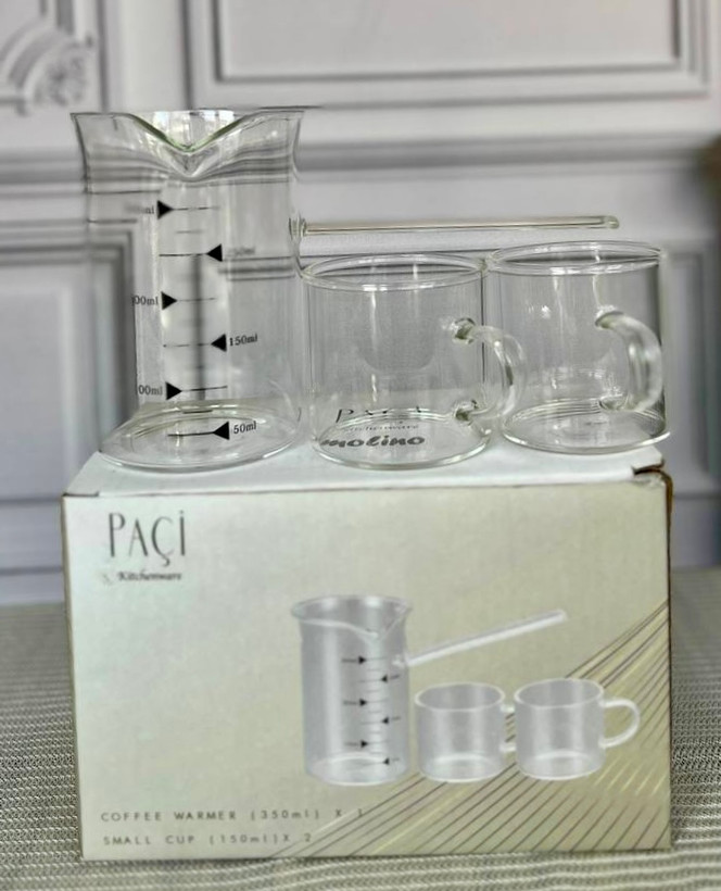 قهوه جوش و شیر جوش پیرکس همراه با دو ماگ پیرکس