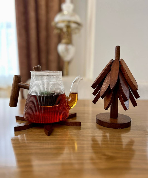 این قوری علاوه بر زیبایی زیادش شکل خاصی هم داره و جنسش تمام پیرکس هست. دسته بامبو داره که اونو شیک تر نشون میده و طراحیش منحصر به فرده👍