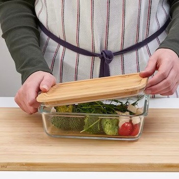 ظرف نگهدارنده پیرکس مستطیل با در بامبو با بدنه پیرکس و در بامبو وارداتی از کیفیت بالایی برخوردار است.