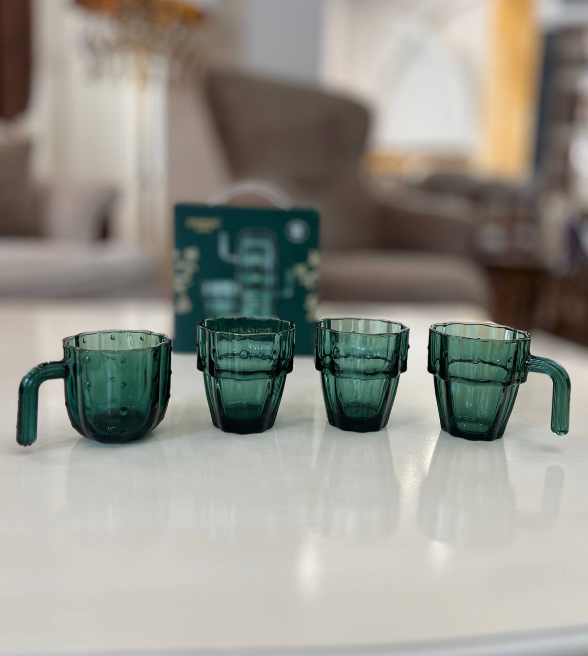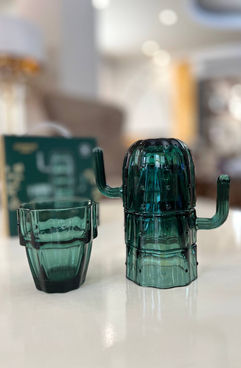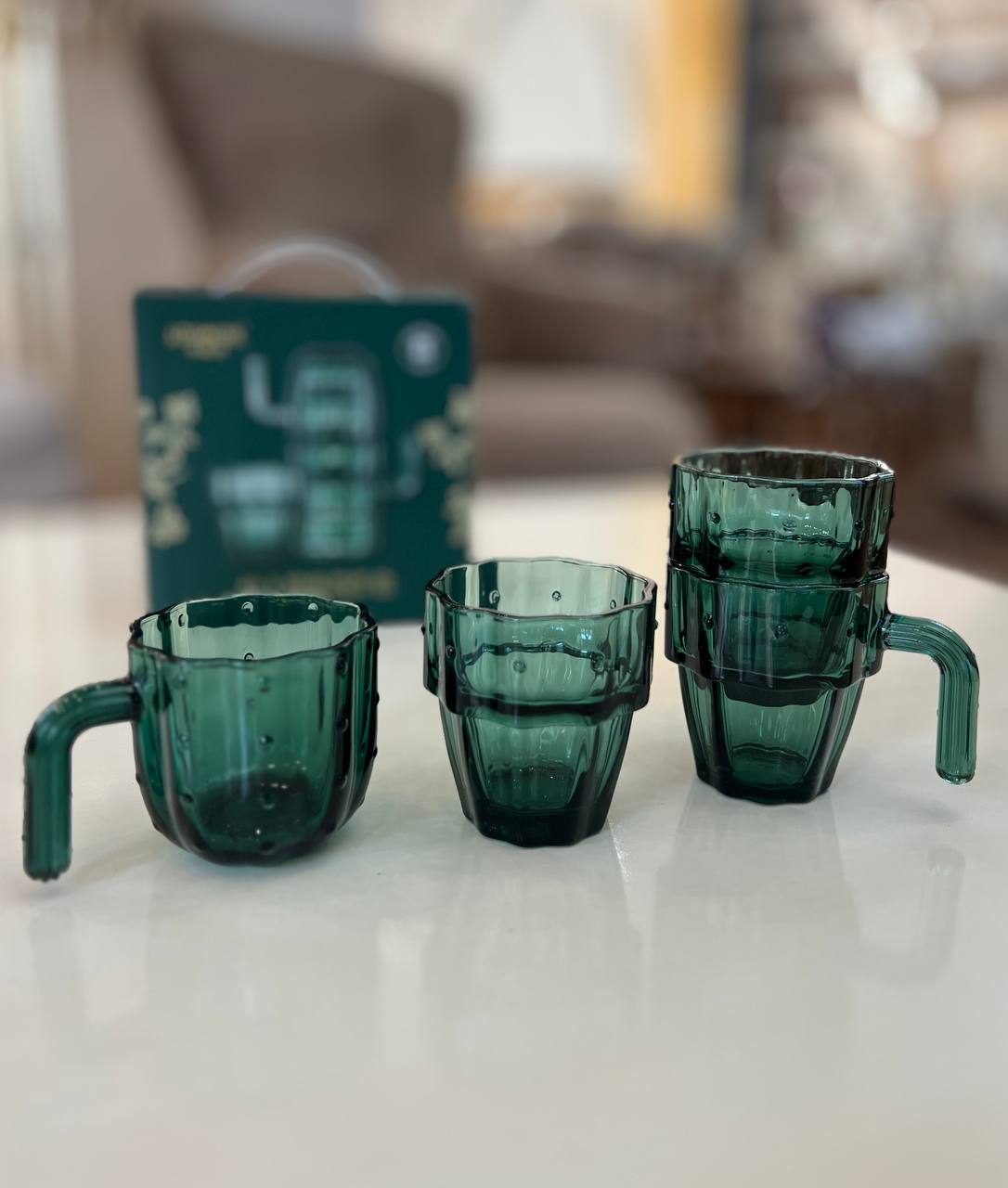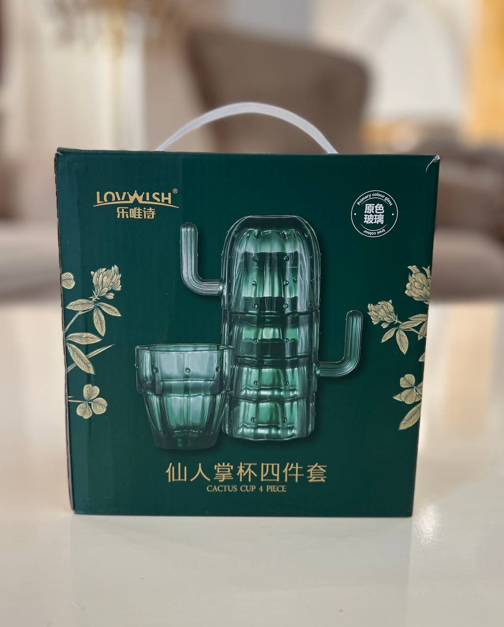 ست ماگ و لیوان ۴ عددی طرح کاکتوس شیشه ای