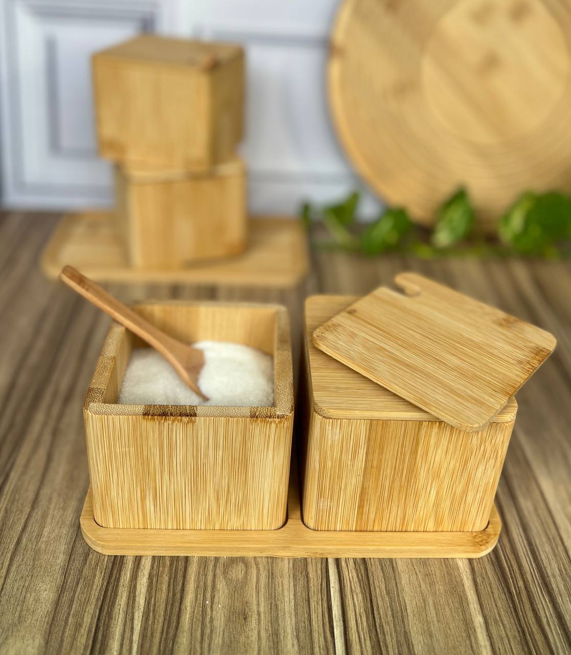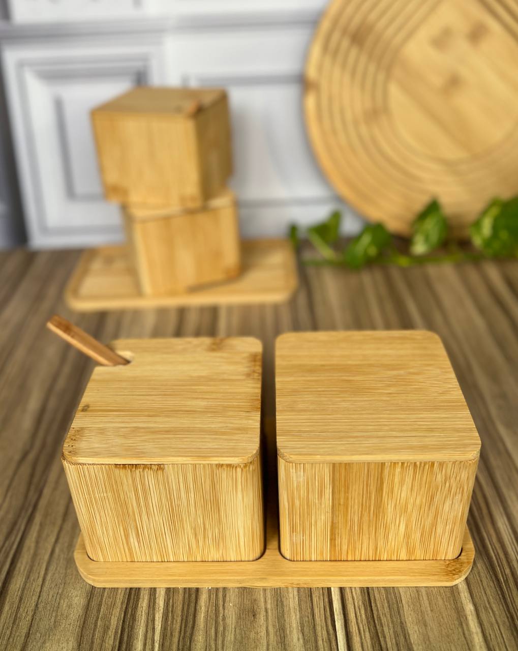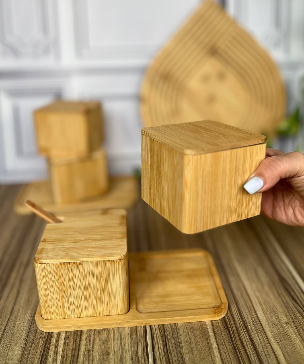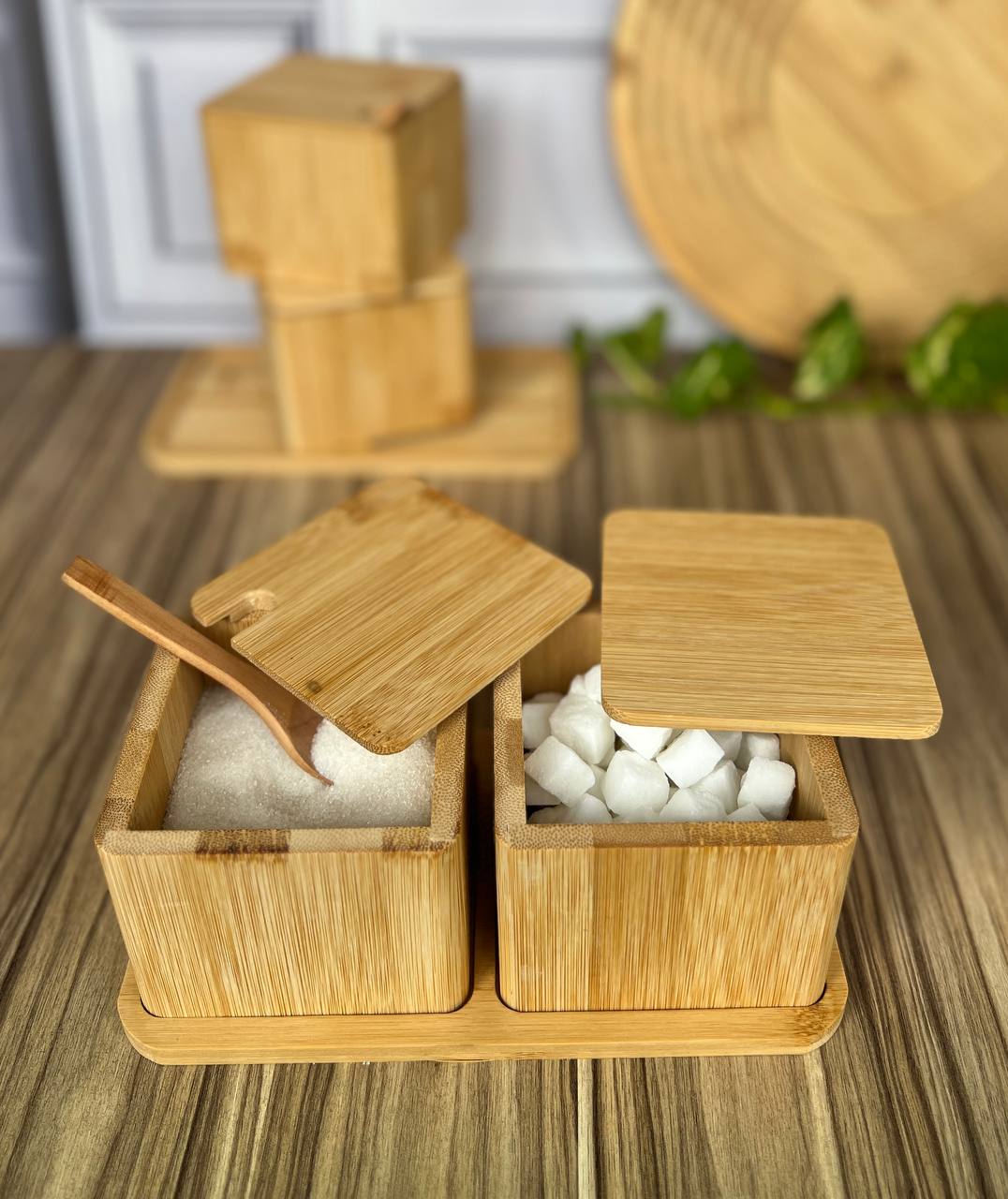 قندان و شکردان و زیره جنس بامبو شکردان دارای قاشق مدل مربعی وارداتی و بسیار باکیفیت ابعاد قندان ۹ در ۹ ابعاد شکرریز ۹ در ۹ زیره ۲۰ سانت